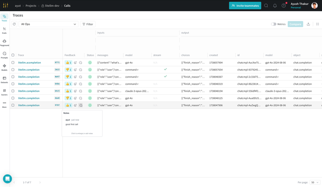 Get started with just 2 lines of code and track your LiteLLM calls with W&B Weave. Learn more about W&B Weave here.