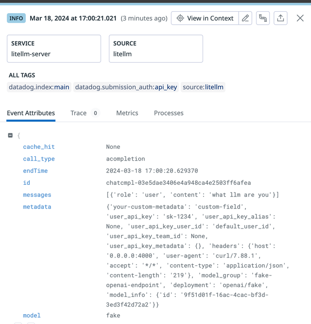 LiteLLM.Info: "no-log request, skipping logging"